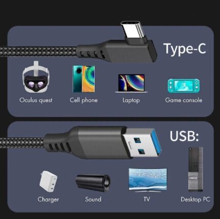 Cabo Importado Usb X Usb C Nylon 5 Metros Corda Preto