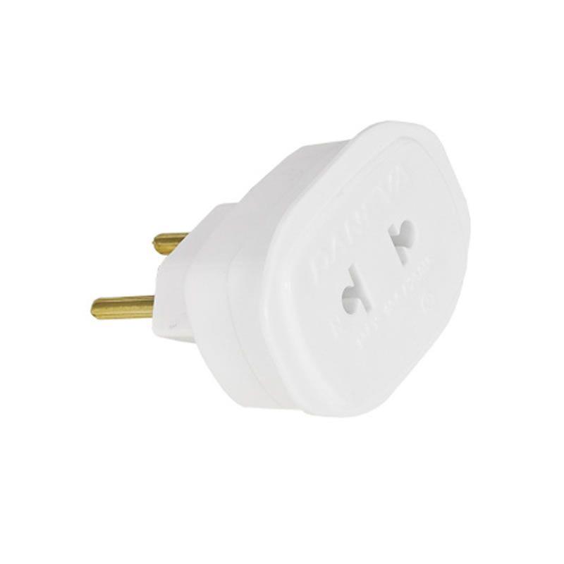 Adaptador de tomada permite que uma tomada de saída 2 polos retos ou redondos se encaixe em uma saída
